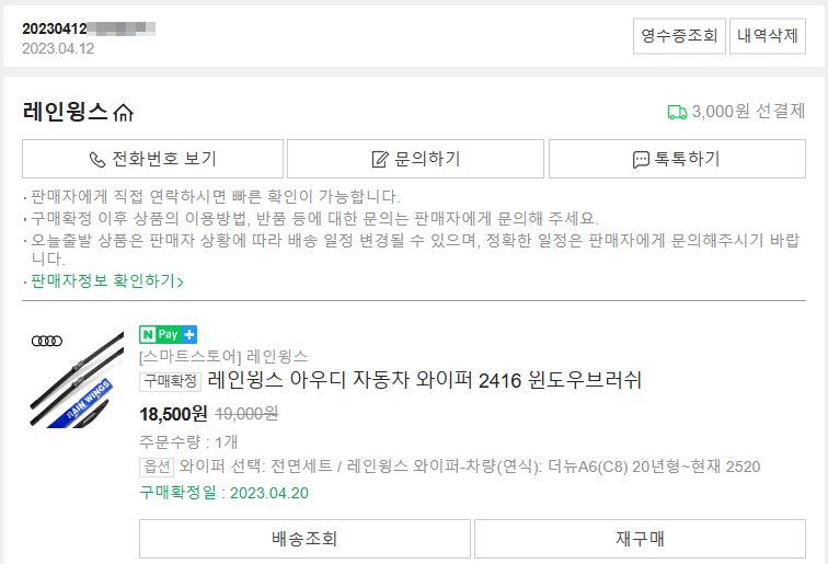 와이퍼 교체는 너무나 만족스러워서 추후에 재구매하려고 포스팅 남기는 목적도 있네요