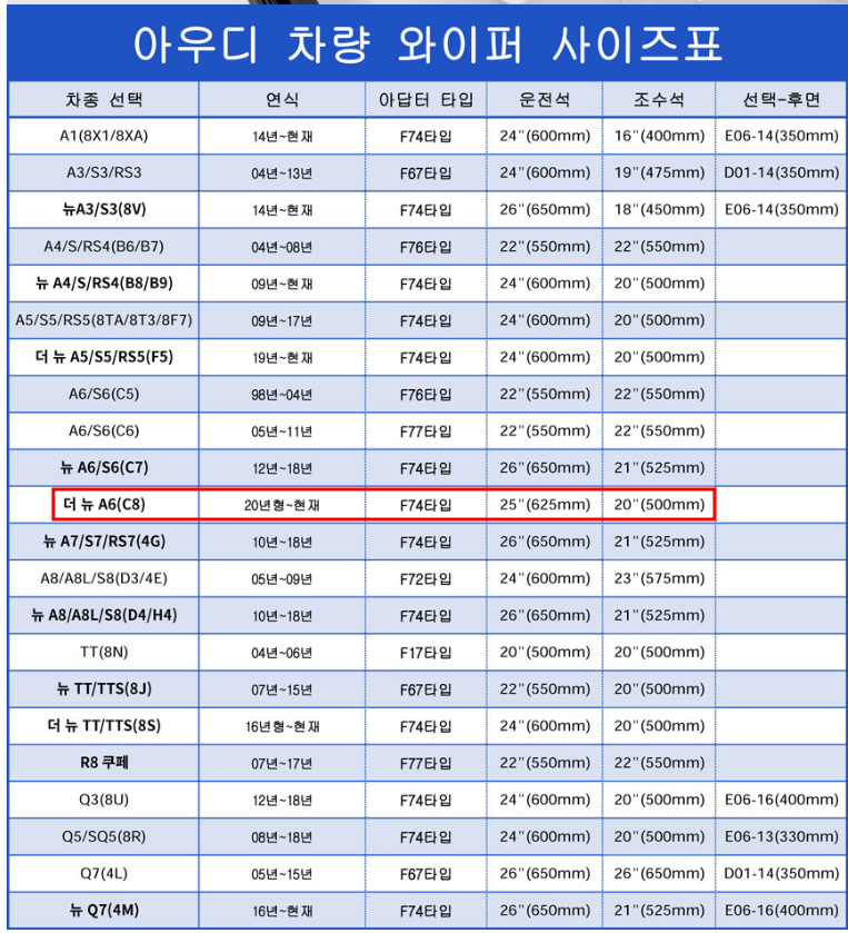 레인윙스 아우디 더뉴 A6 C8 와이퍼 전면 2종 세트